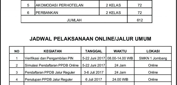 Pendaftaran Penerimaan Peserta Didik Baru (PPDB) SMK Negeri 1 Jombang TA. 2020/2021 Sebagai Berikut : Ketentuan Umum Pendaftaran : Berusia paling tinggi 21 (dua puluh satu) tahun pada tanggal 13 Juli 2020 Hanya diizinkan mendaftar sekali di setiap jalur pendaftaran Harus memiliki PIN yang dapat diunduh melalui situs http://ppdbjatim.net Penerimaan Peserta Didik Baru tidak dipungut biaya …