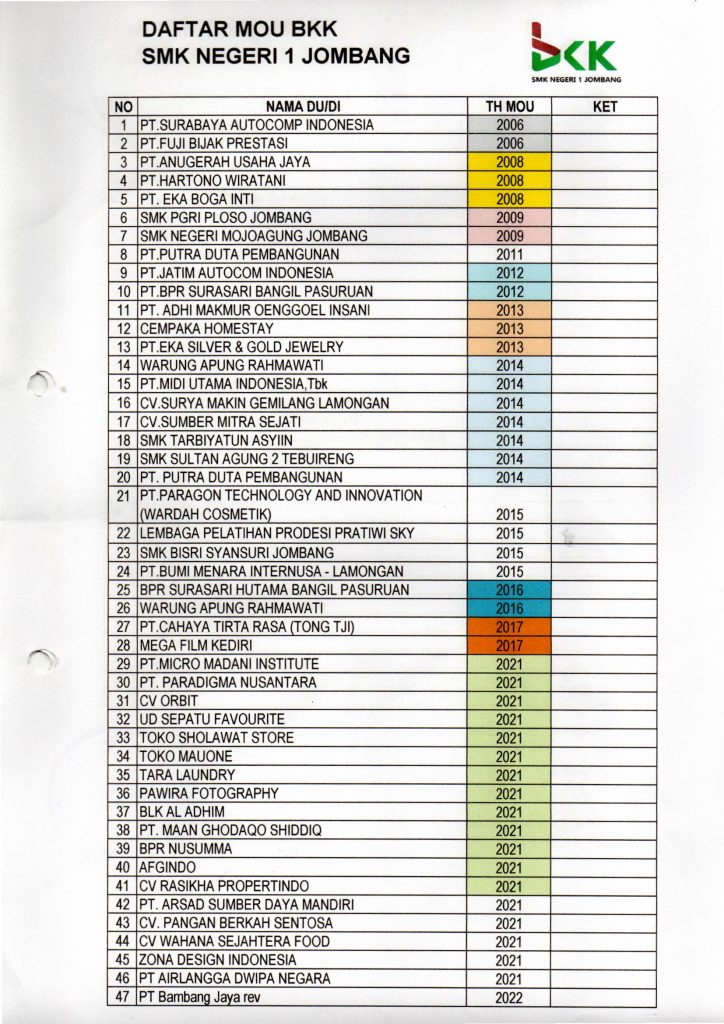 Kemitraan DI/DI BKK SMKN 1 Jombang