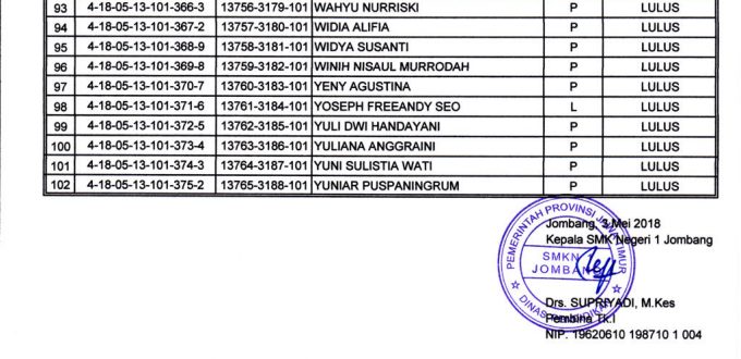 Keputusan Kepala Sekolah SMKN 1 Jombang Himbauan2 penetapan2